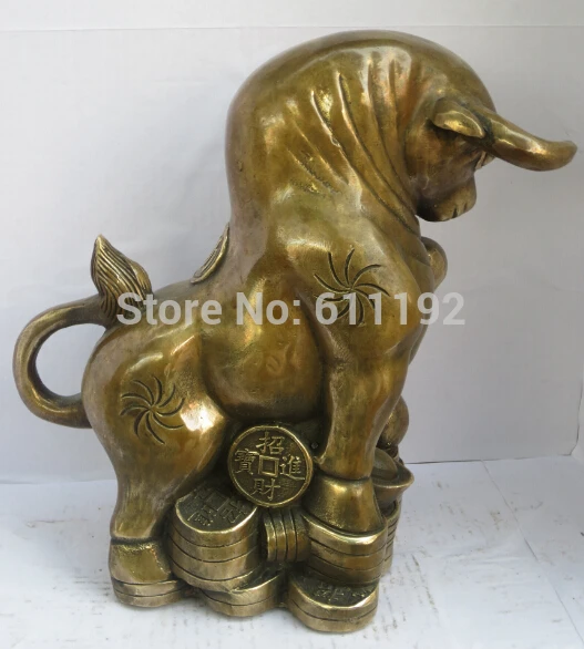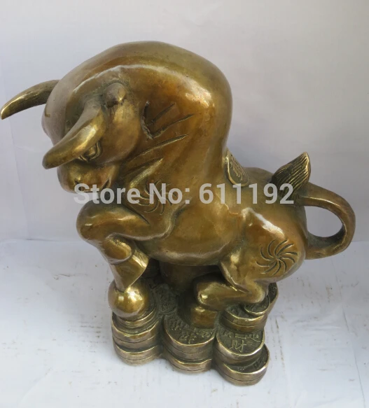 Antique FengShui home decor Cow sculpture Metal crafts Lucky Bull coin statueHoliday Gift Size:21*1