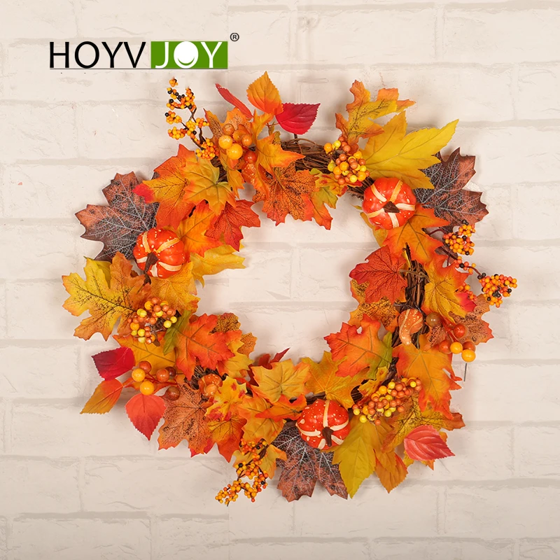 Best Quality HOYVJOY Maple Leaf Fall Wreaths Halloween Pumpkin Decor Holiday Decoration For Home Party Supplies