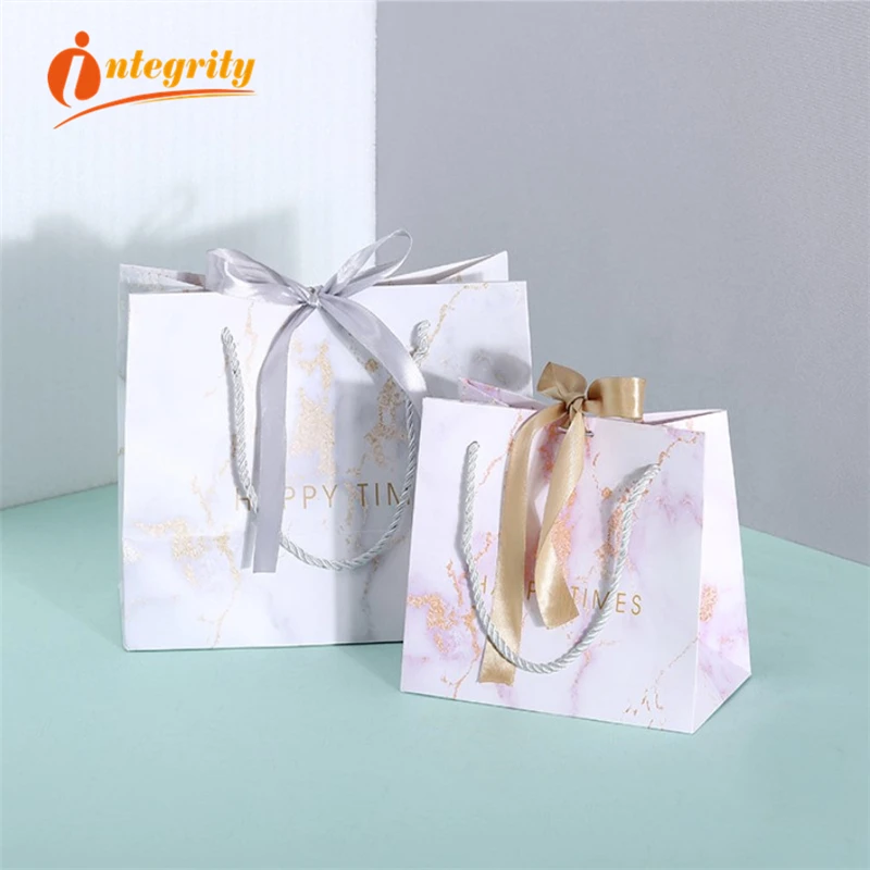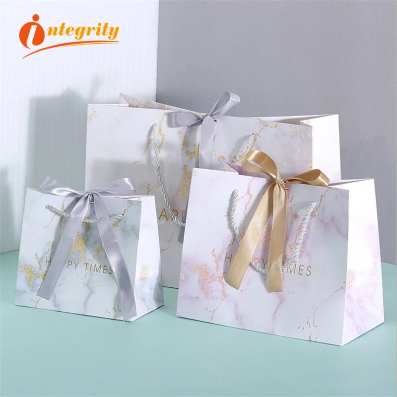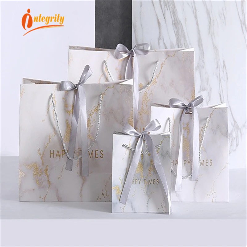 HOT Sale 100pcs Marble Paper Gift Bags Garment Holiday Portable Shopping Bag Business Packaging Wedding Part