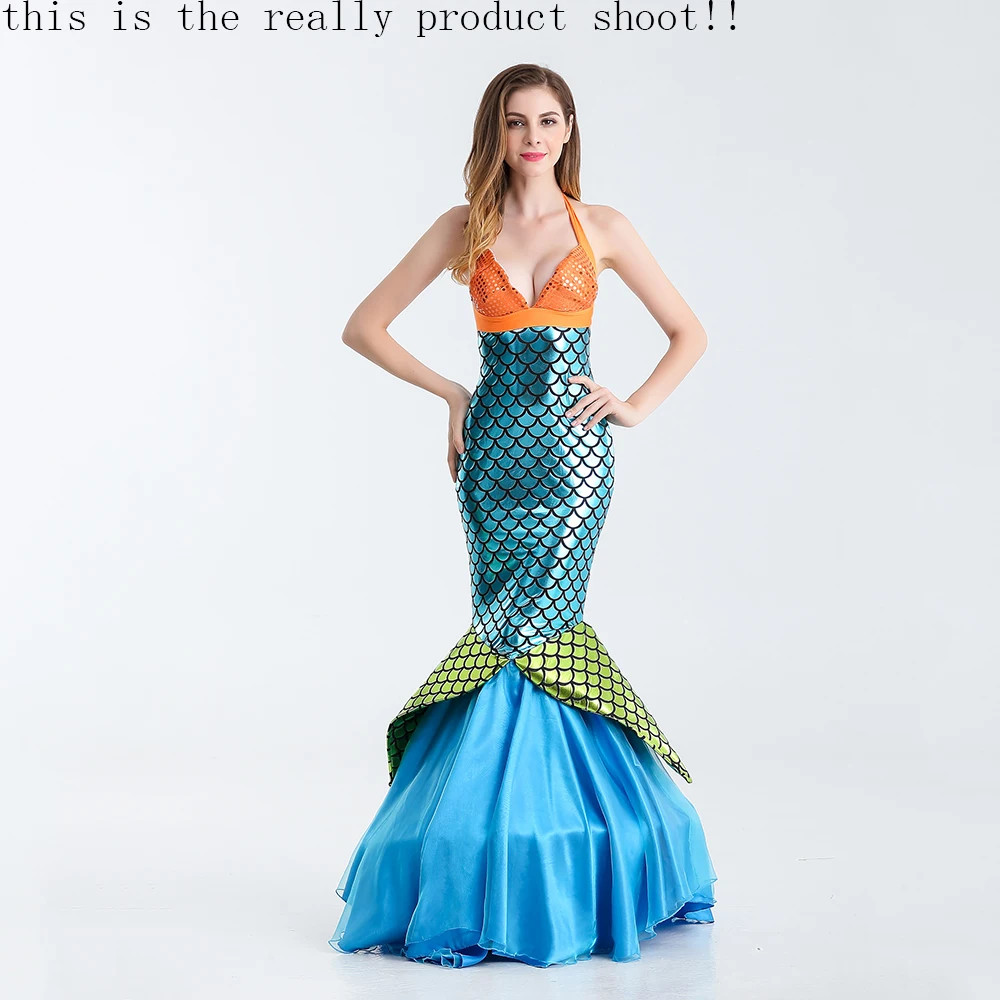 BEST QUALITY Sexy Little Mermaid Costume Adult Women Halloween Fantasia Mermaid Tail Princess Cosplay Carnival F