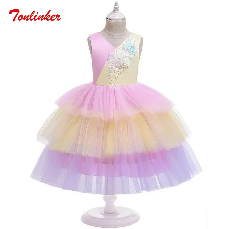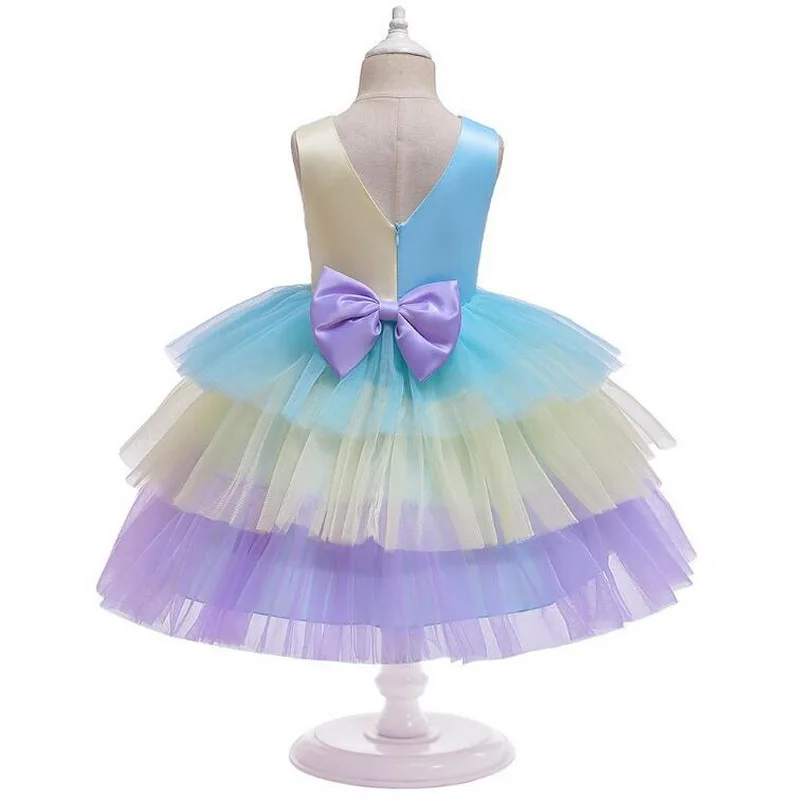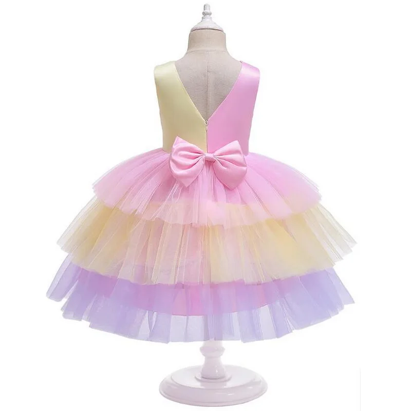 New Style Girls Color matching Cake Princess Dress Costumes For Fit Kids Birthday Theme Party Dress